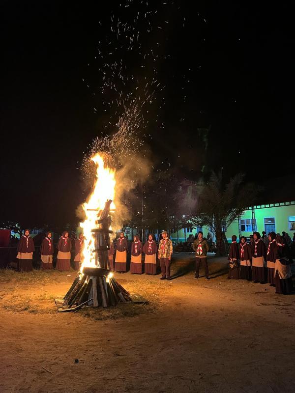 Malam harinya, acara api unggun menjadi momen yang paling dinanti. Para peserta menampilkan kreativitas mereka melalui pentas seni dan permainan yang semakin mempererat kebersamaan.
