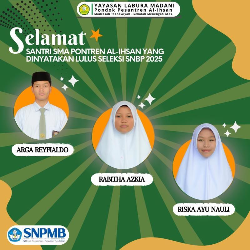 Kami dengan bangga mengucapkan selamat kepada siswa-siswi kami yang telah berhasil lolos Seleksi Nasional Berdasarkan Prestasi (SNBP) 2025 dan diterima di berbagai perguruan tinggi negeri ternama.